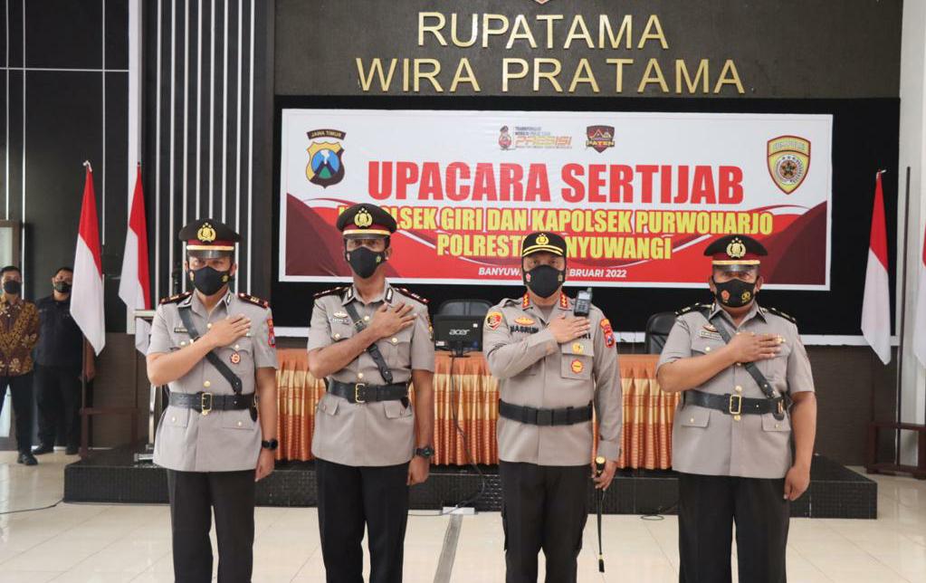 AKP Mohammad Ibnu Mas’ud sebelumnya menjabat Kapolsek Giri, dimutasikan sabagai Kabag Ops Polres Situbondo. AKP Endro Abrianto dari jabatan lama sebagai Kapolsek Purwoharjo geser menjadi Kapolsek Giri. Dan AKP Budi Hermawan sebelumnya Kanit Gakkum Satlantas Polresta Banyuwangi, dimutasikan menjadi Kapolsek Purwoharjo