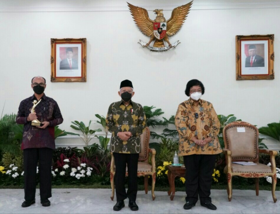 Penghargaan diserahkan di hadapan Wakil Presiden RI K.H. Ma’ruf Amin dan Menteri Lingkungan Hidup dan Kehutanan Siti Nurbaya di Istana Wakil Presiden yang diterima Dirut PJB Gong Matua Hasibuan, Direktur Operasi-1 Yossy Noval dan Direktur Operasi-2 Rachmanoe Indarto, Selasa (28/12/2021).