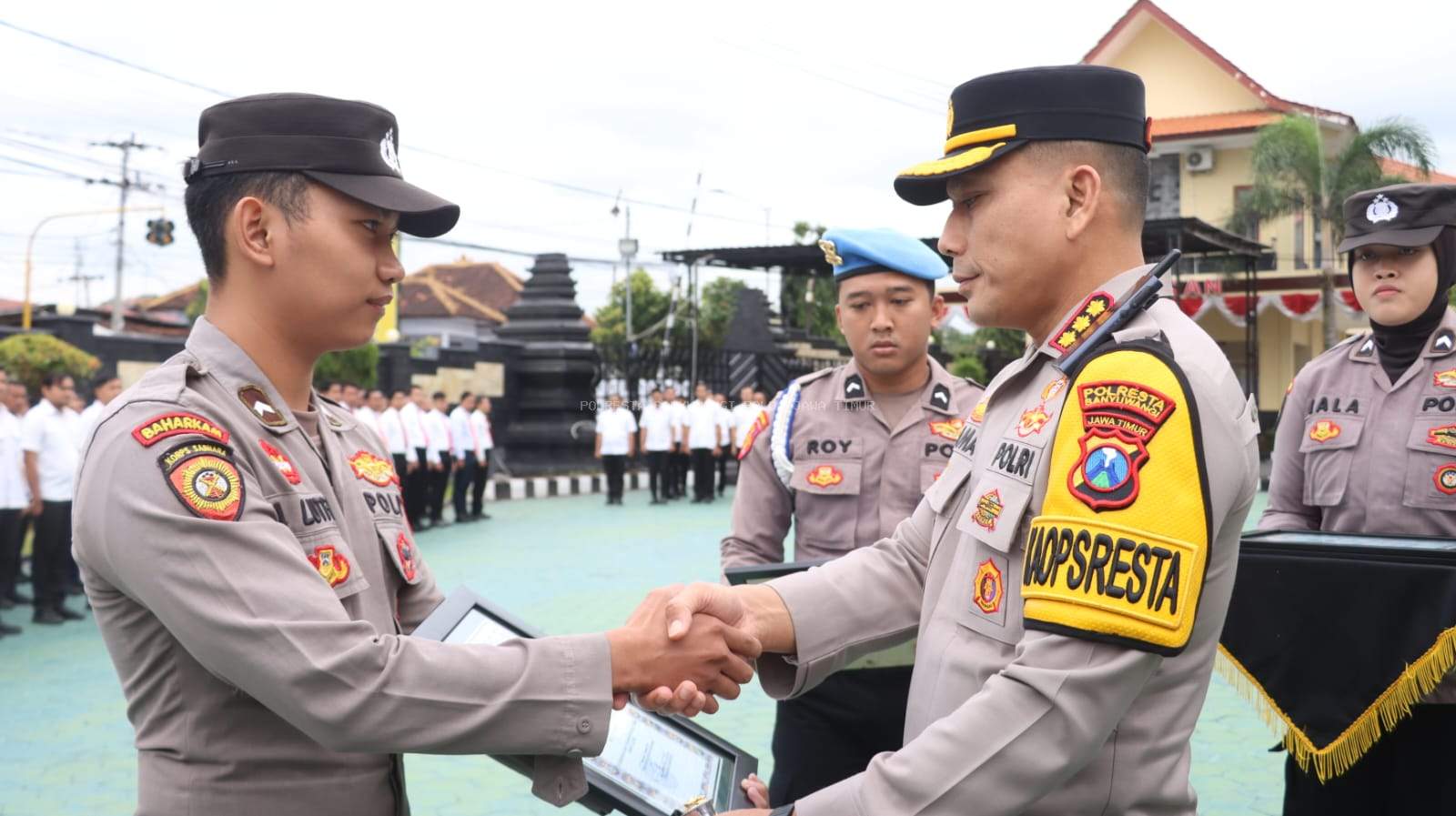 BANYUWANGI | bidik.news – Sebanyak 43 personel Polresta Banyuwangi dan Polsek jajaran yang berprestasi di berbagai bidang menerima penghargaan dari Kapolresta Banyuwangi.