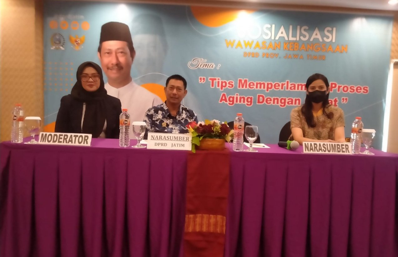 SURABAYA I BIDIK.NEWS – Anggota DPRD Jawa Timur dari Dapil Surabaya Hartoyo memberikan wawasan bagaimana cara memperlambat proses aging atau penuaan dengan sehat khususnya kalangan emak emak.