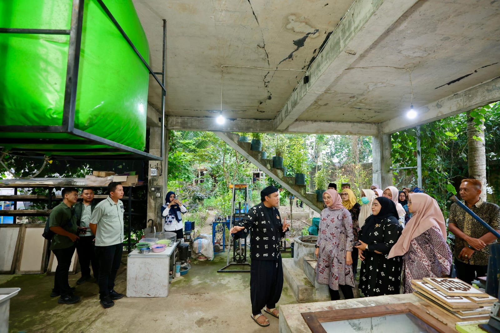 Saat kegiatan Bupati Ngantor di Desa (Bunga Desa) di Desa Tegalharjo, Glenmore, Jumat (7/8/2025), didampingi dr. Ananta, Bupati Banyuwangi, Ipuk Fiestiandani, mengikuti garden tour untuk melihat berbagai praktik keberlanjutan yang diterapkan di lokasi ini.