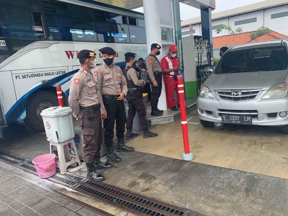 Polres Gresik saat melakukan patroli di SPBU
