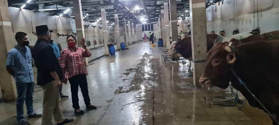 SURABAYA – Anggota komisi B DPRD Jawa Timur Agatha Retnosari sidak ke Rumah Pemotongan Hewan (RPH) Pegirikan, Surabaya pada Selasa malam (10/5/2022).