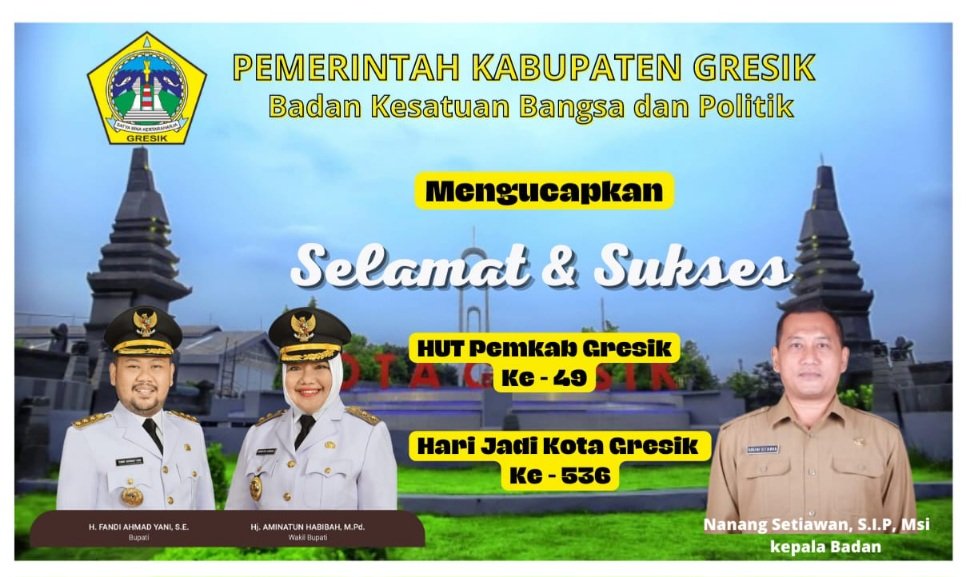 Bakesbangpol Kabupaten Gresik, Mengucapkan Selamat HUT Pemda Gresik Ke-49 dan Hari Jadi Kota Gresik Ke – 536