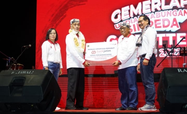 Moment ini bertepatan dengan Pagelaran Gemerlap Undian Tabungan Simpeda 2022 di Kabupaten Bondowoso. Bantuan CSR diserahkan secara simbolis oleh manajemen bankjatim yaitu Erdianto Sigit Cahyono (Direktur Kepatuhan & Manajemen Risiko) didampingi Budi Sumarsono (Corporate Secretary) serta Elisabeth (Pemimpin Cabang Bondowoso) kepada Bupati Bondowoso, K.H. Salwa Arifin di Alun – Alun RBA Ki Ronggo Bondowoso.