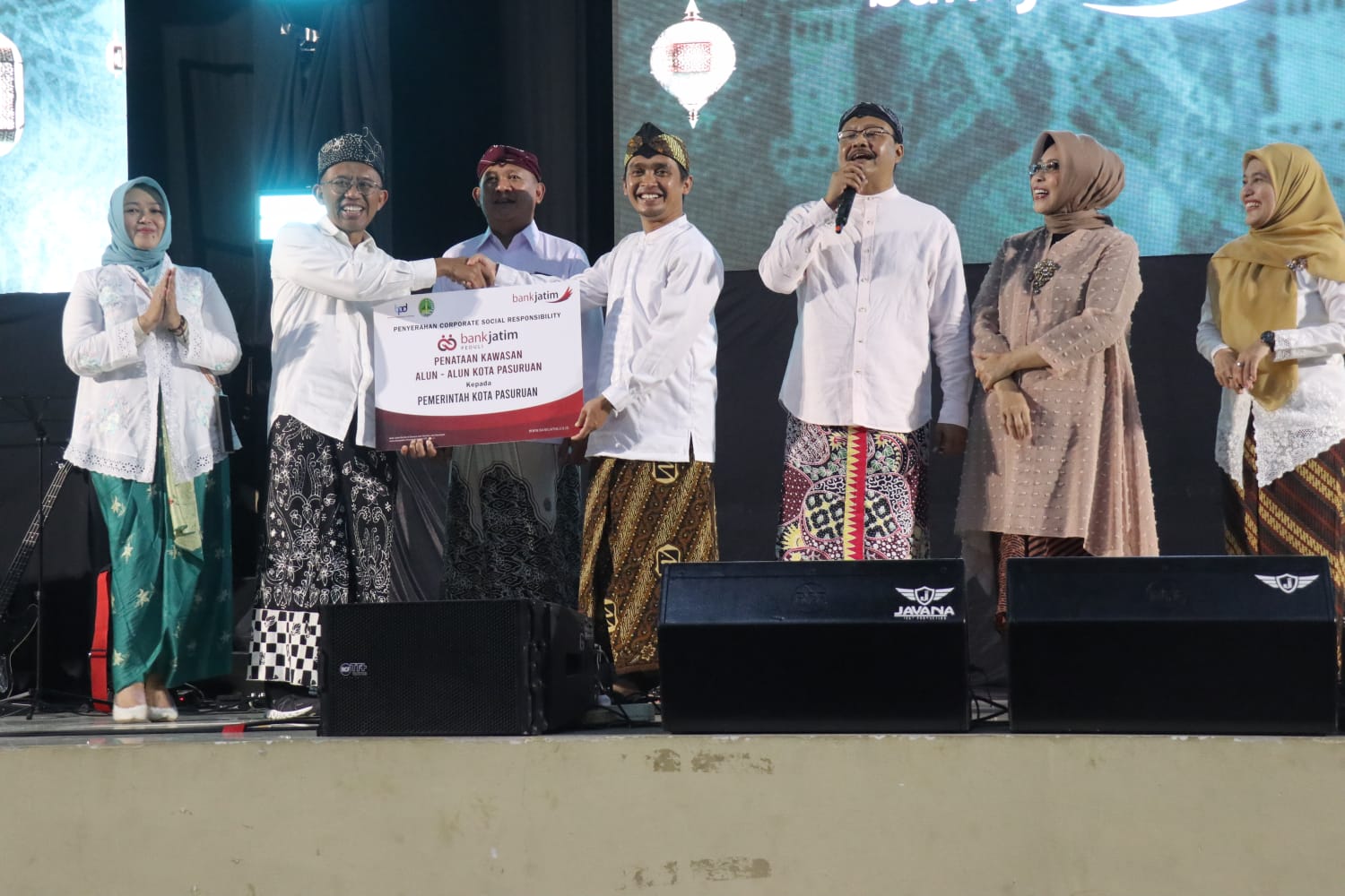 PASURUAN l bidik.news – PT Bank Pembangunan Daerah Jawa Timur Tbk (bankjatim) secara resmi telah menyerahkan bantuan Corporate Social Responsibility (CSR) kepada Kota Pasuruan. Bantuan yang diberikan berupa penataan kawasan alun-alun Kota Pasuruan. Bertempat di Gedung Kesenian Darmoyudo, penyerahan CSR dilakukan secara simbolis oleh Direktur Manajemen Risiko bankjatim Eko Susetyono kepada Walikota Pasuruan Saifullah Yusuf pada Selasa malam (7/5) dalam rangkaian acara Halal Bihalal Tenaga Pendidikan Se-Kota Pasuruan.