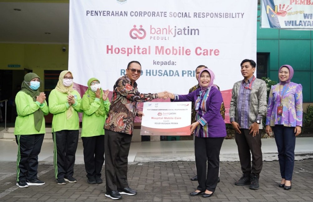 “Penyerahan 1 unit mobil Hospital Mobile Care pagi ini merupakan upaya bankjatim untuk membantu RSUD Husada Prima dalam memberikan dan meningkatkan pelayanan kepada masyarakat di bidang kesehatan khususnya di wilayah Surabaya dan sekitarnya”, imbuh Edi.