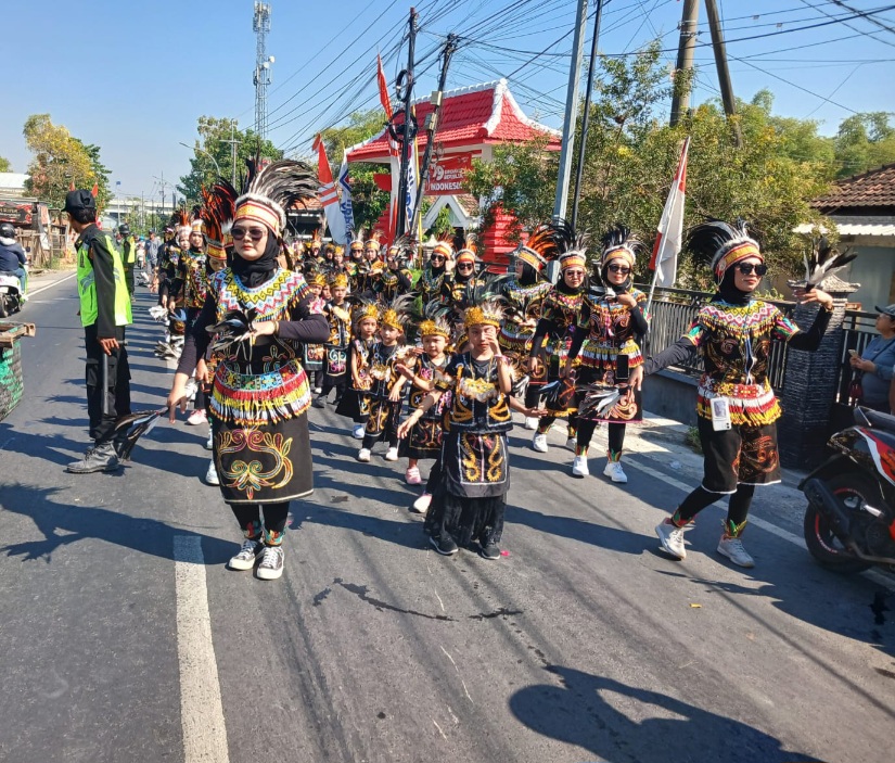 Sementara kelompok peserta yang mengusung adat Bali memilih membawa dupa, patung kuda pada adat Jawa, hingga miniatur Ibu Kota Negara (IKN) ditampilkan oleh kelompok yang mengusung adat Kalimantan.