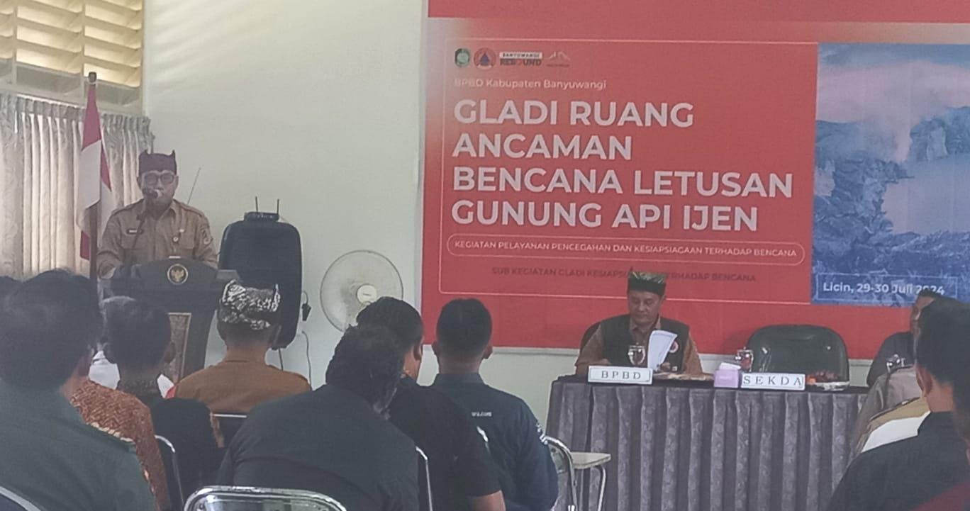 Hal itu dilakukan dengan digelarnya kegiatan geladi ruang bencana letusan Gunung Ijen di Gedung Diklat PNS, Licin, Senin (29/7/2024).