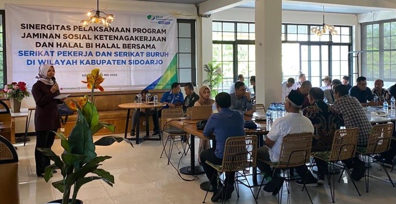 SIDOARJO – BPJS Ketenagakerjaan (BPJamsostek) Sidoarjo menggelar kegiatan bertajuk ‘Sinergitas Pelaksanaan Program Jaminan Sosial Ketenagakerjaan & Halal Bi Halal Bersama Serikat Pekerja dan Serikat Buruh Di Wilayah Kab. Sidoarjo’, Rabu (25/5/2022).