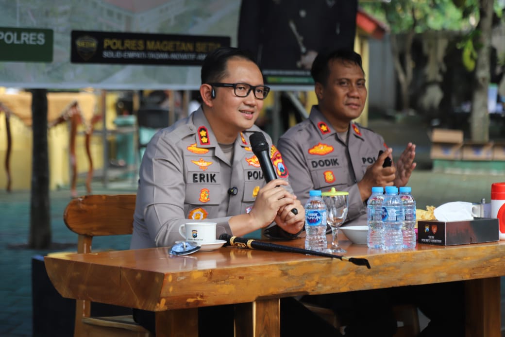 MAGETAN l bidik.news – Dalam suasana santai dan penuh kekeluargaan, Polres Magetan menggelar kegiatan coffee morning bersama jajaran Pemuda Muhammadiyah Magetan, Senin (7/7/2025). Bertempat di halaman belakang Mapolres Magetan, acara ini menjadi ajang silaturahmi antara Kapolres Magetan, AKBP Raden Erik Bangun Prakasa dengan para tokoh pemuda yang hadir.