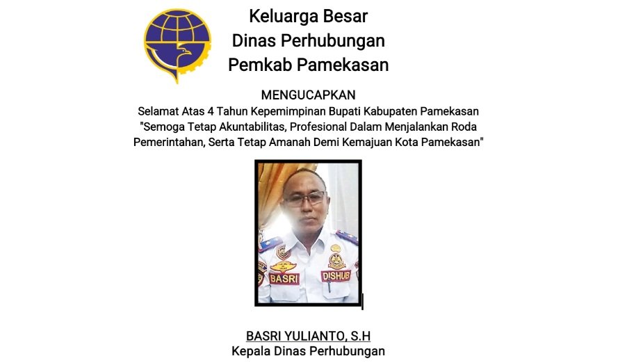 Dinas Perhubungan Pemkab Pamekasan Mengucapkan, Selamat Atas 4 Tahun Kepemimpinan Bupati Pamekasan