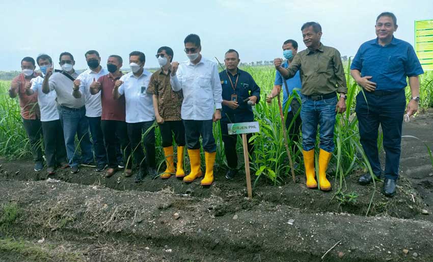 JOMBANG – Direktur Jenderal (Dirjen) Pengelolaan Hutan Lestari (PHL) Kementerian Lingkungan Hidup dan Kehutanan (KLHK) Agus Justianto mengunjungi lokasi tanaman Agroforestry Tebu Mandiri (ATM) di wilayah Perhutani Kesatuan Pemangkuan Hutan (KPH) Jombang, Jum’at (14/1/2022).