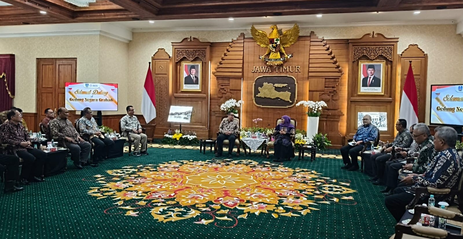 kunjungan silaturahmi dan koordinasi dengan Gubernur Jatim Khofifah Indar Parawansa di Gedung Grahadi, Surabaya, Senin (15/12/2025) malam.