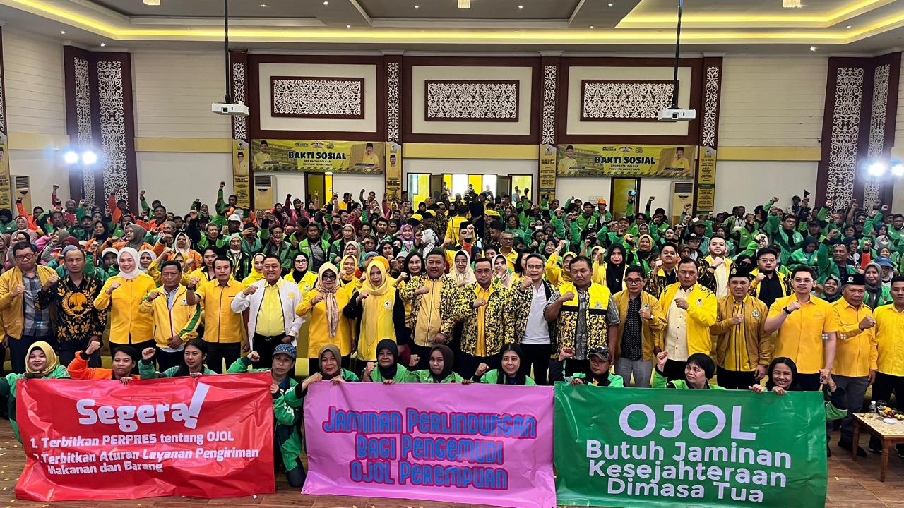 ” Hari Pertama Rumah aspirasi dibuka langsung di serbu ratusan Ojol ( ojek online) dan mereka menyampaikan uneg unegnya . Golkar juga gelar Bhakti sosial di pembukaan rumah aspirasi , ” kata Ali Mufthi usai terima ratusan Ojol.
