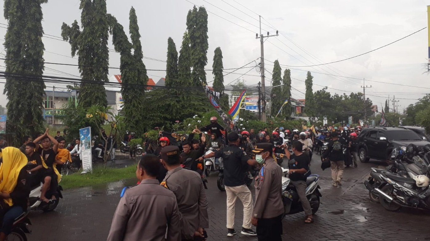 Mereka datang ke kantor Pengadilan Negeri (PN) Gresik untuk memberikan dukungan ketiga terdakwa yang menjadi anggota salah satu perguruan pencak silat. Mereka membawa bendera kebesaran dan mengendarai motor memadati halaman Kantor Pengadilan Negeri Gresik, Jalan Raya Permata, Kebomas.