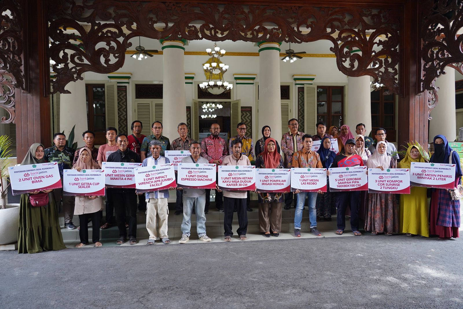Direktur Utama bankjatim Busrul Iman menjelaskan, peralatan UMKM yang diberikan kepada pelaku usaha tersebut terdiri dari beberapa jenis barang. Seperti mesin press tekiro, mesin pencampur pakan ternak 200 kg, mesin peniris minyak 2 liter, mesin gerinda makita 4 inc, oven gas, mesin ketam kayu meja duduk kafeer 30 cm, dan masih banyak lagi. ”Semua itu kami berikan dengan tujuan untuk mengurangi angka pengangguran, meningkatkan kualitas UMKM, dan menunjang produktivitas pelaku UMKM. Sehingga ke depannya diharapkan bisa berdampak terhadap peningkatan kesejahteraan para pelaku usaha dan sekaligus memperkuat perekonomian masyarakat di Kabupaten Pamekasan,” paparnya.