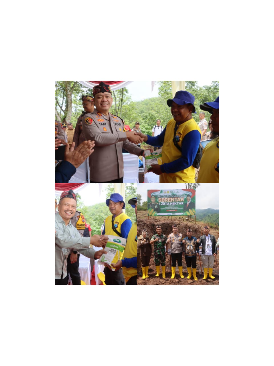 “Hari ini kita berada di Kecamatan Sendang di lahan perkebunan PT Indoco hadir di tengah-tengah kita seluruh pejabat dari Kabupaten Tulungagung termasuk pak Zaki dari Indoco kita melaksanakan penanaman jagung serentak satu juta hektare”, ujar Kapolres Tulungagung AKBP Muhammad Taat Resdi.