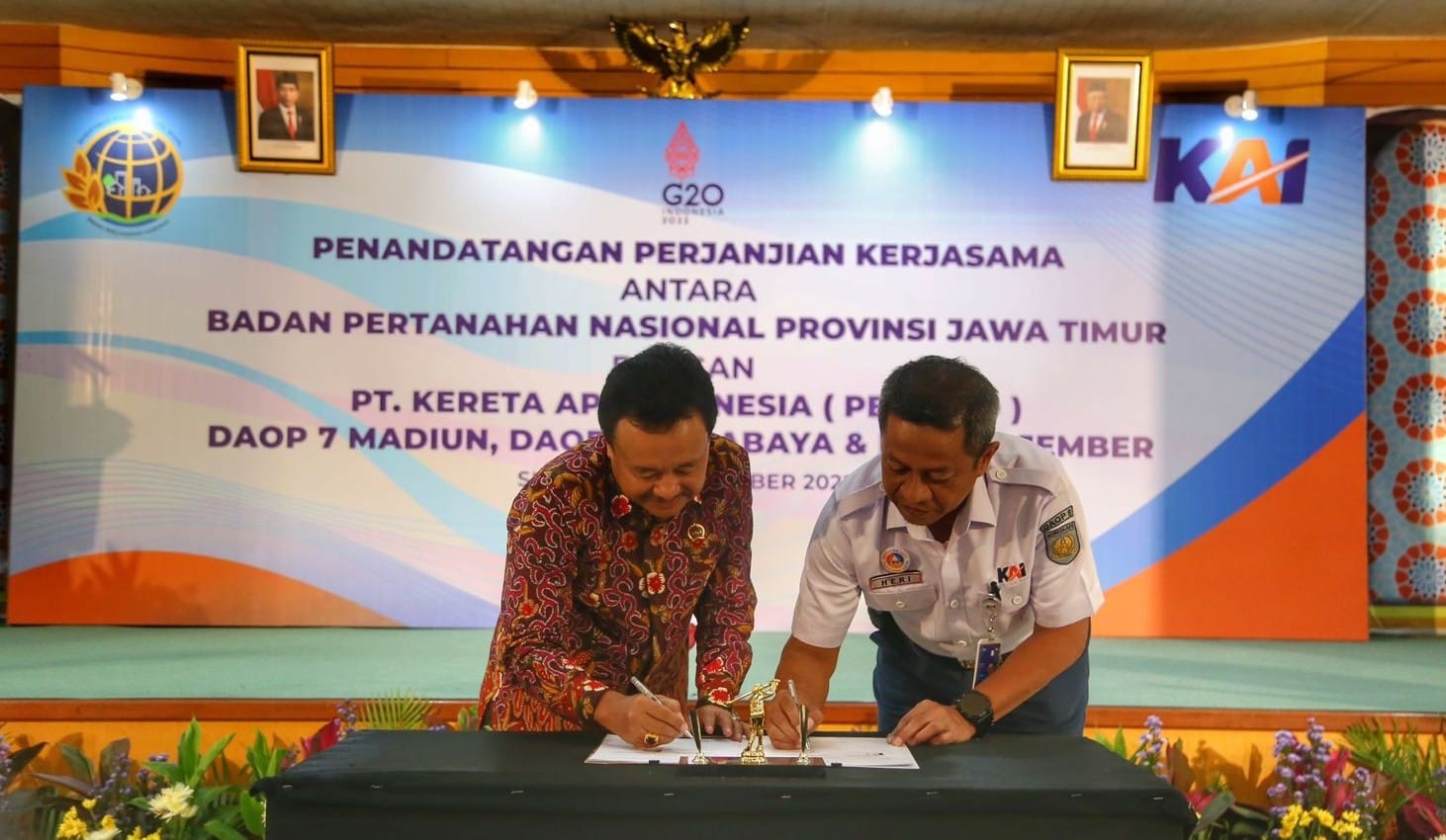 SURABAYA | BIDIK.NEWS – Tiga Kepala Daerah PT Kereta Api Indonesia (KAI) (Persero) yang wilayah kerjanya berada di Jawa Timur, yaitu Daerah Operasi (Daop) 7 Madiun, Daop 8 Surabaya dan Daop 9 Jember menandatangani Perjanjian Kerja Sama (PKS) dengan Badan Pertanahan Nasional (BPN) Jawa Timur.