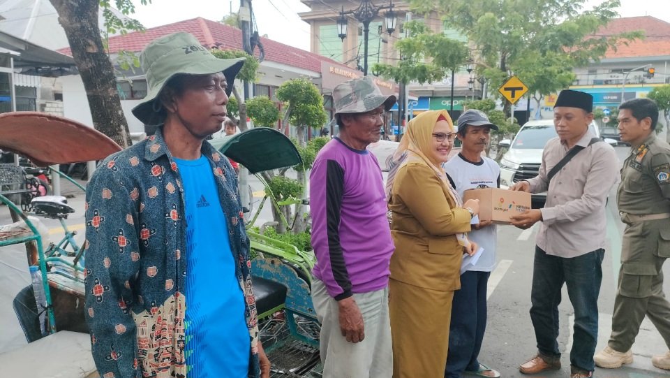 GRESIK I bidik.news – Momen Bulan Ramadan, Komunitas Wartawan Gresik (KWG) bersama Wakil Bupati Gresik, Aminatun Habibah, menyalurkan bingkisan sembako kepada 100 Abang becak.