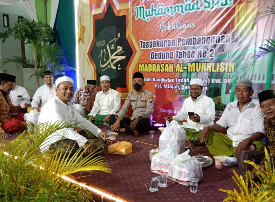 Pada acara syukuran ini juga dilaksanakan penyerahan Pembangunan madrasah Al-Mukhlisin dari ketua panitia pembangunan AKP M. Bahrudi S.H yang juga merupakan Kasat Binmas Polres Bangkalan kepada ketua Yayasan Abdussalam S.pdi.