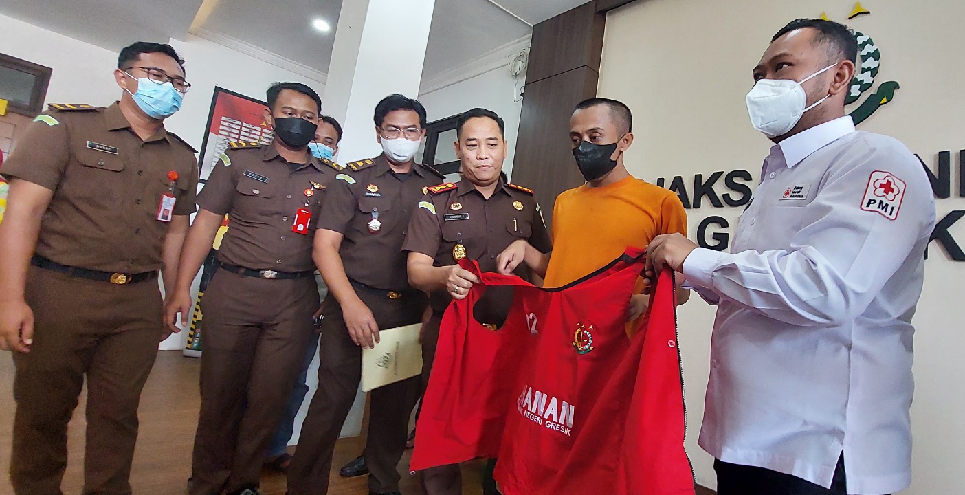 GRESIK – Kejaksaan Negeri (Kejari Gresik) melepaskan baju tahanan serta memberhentikan penuntutan atas perkara tindak pidana pencurian dengan terdakwa Umar. Pemberhentian perkara ini dilakukan atas dasar Peraturan Jaksa Agung No. 15 tahun 2020 tentang Restorative Justice, Jumat (01/04/2022).