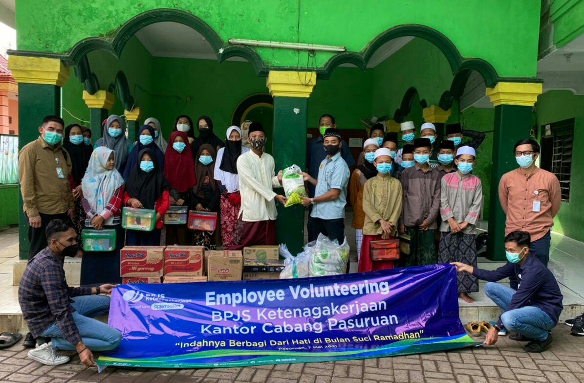 PASURUAN – BPJAMSOSTEK Kantor Cabang Pasuruan kunjungi Yayasan Al Muttaqin yang jaraknya tidak jauh dari Kantor BPJAMSOSTEK, Jumat (7/5/2021). Kunjungan tersebut merupakan kegiatan sosial bertema ‘Employee Volunteering’, bentuk kepedulian karyawan BPJAMSOSTEK terhadap lingkungan sekitar kantor.