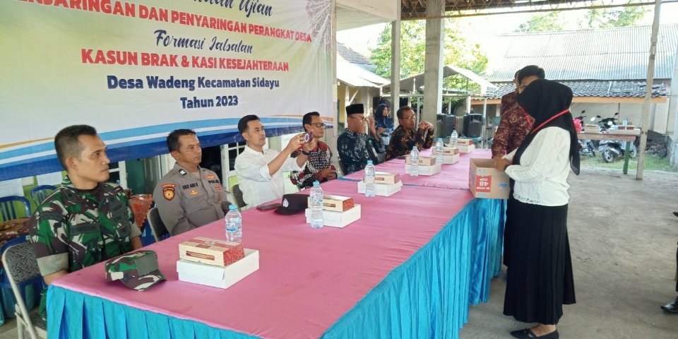 GRESIK I BIDIK.NEWS – Bertempat di balai Desa Wadeng, Pemerintah Desa (Pemdes) Wadeng Kecamatan Sidayu Kabupaten Gresik adakan ujian Penjaringan dan Penyaringan Perangkat Desa (P3D). Tahapan P3D yang sudah dilakukan mulai pertengahan bulan April 2023 lalu, guna untuk mengisi kekosongan jabatan Kepala Dusun (Kasun) dan Kasi Kesejahteraan (Kesra), Kamis (25/05/2023).