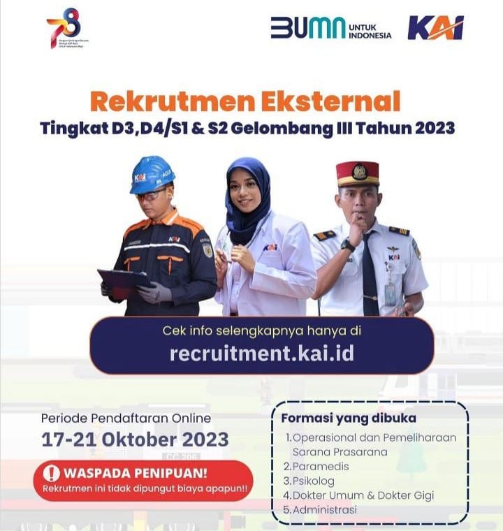 Adapun untuk rincian persyaratan dan tahapan rekrutmen, masyarakat dapat mengakses laman web recruitment.kai.id.
