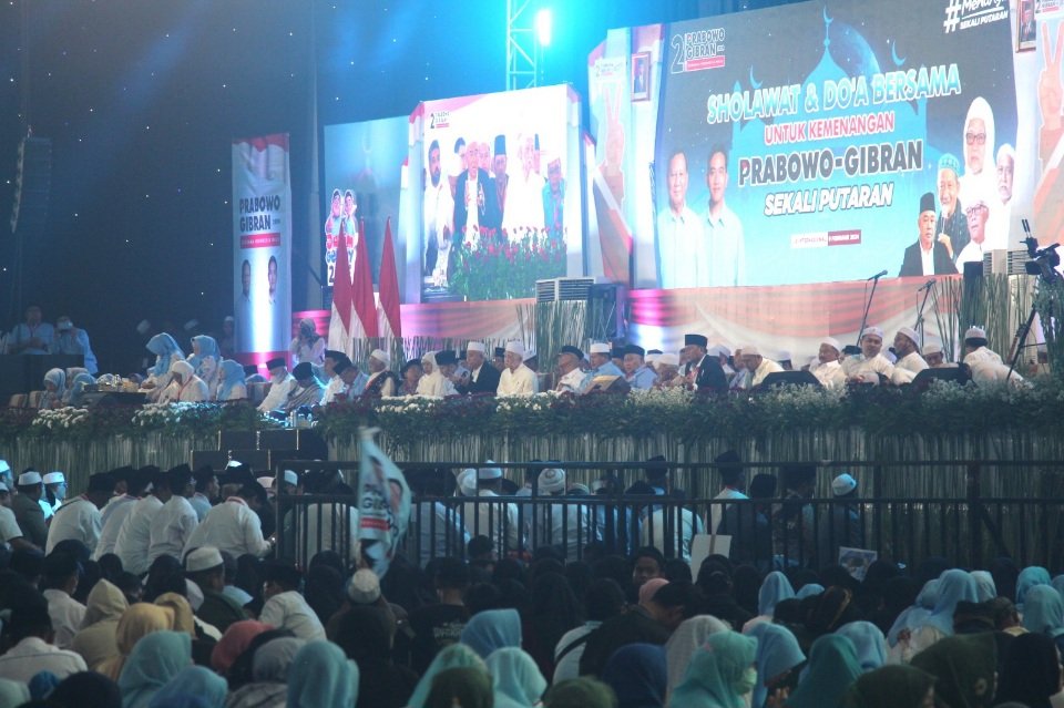 Pernyataan itu disampaiikan Khofifah Indar Parawansa saat orasi politik dihadapan ribuan massa dan ratusan kiai, bu nyai serta gus dan ning yang memenuhi gedung JX International Expo dalam rangka Sholawat dan Doa Bersama Untuk Kemenangan Prabowo Gibran Sekali Putaran.