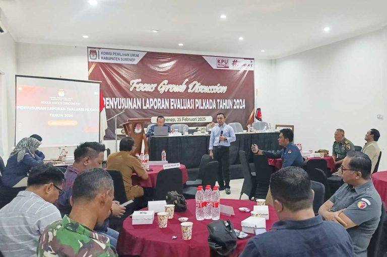 SUMENEP | bidik.news – Komisi Pemilihan Umum (KPU) Kabupaten Sumenep mengadakan Focus Group Discussion (FGD) guna menyusun laporan evaluasi Pilkada 2024. Acara ini berlangsung di Ballroom El Malik Hotel pada Selasa (25/2/2025).