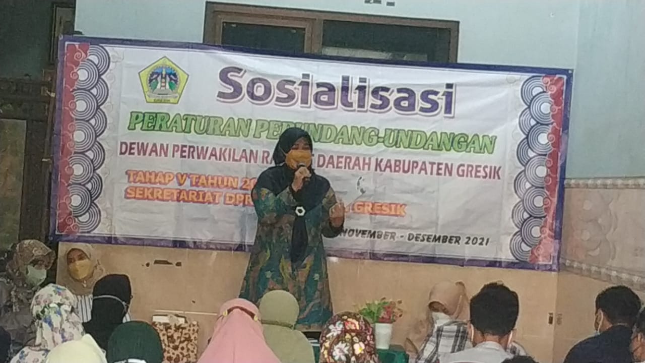 Sosialisasi perundang -undangan tahap V tahun 2021, anggota DPRD Gresik fraksi PPP, Hj. Lilik Hidayati, bersama H. Khoirul Huda dihadiri oleh perwakilan dari karang taruna, guru PAUD se kecamatan Kebomas. ( ali )