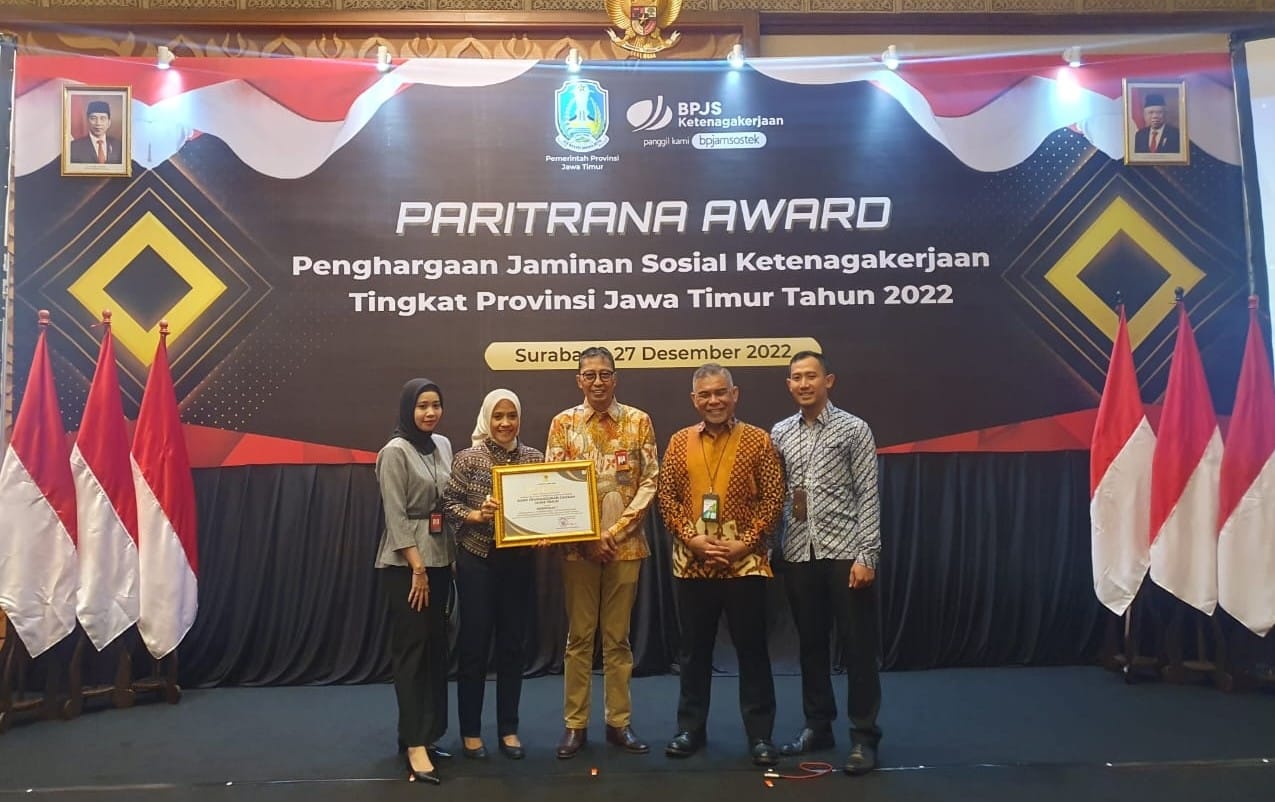 SURABAYA | BIDIK.NEWS – PT Bank Pembangunan Daerah Jawa Timur Tbk (Bank Jatim) kembali menyabet Anugerah Paritrana Award. Kali ini Juara 1 Paritrana Award 2022 Jawa Timur Kategori Perusahaan Skala Besar Sektor Keuangan, Perdagangan, dan Jasa.