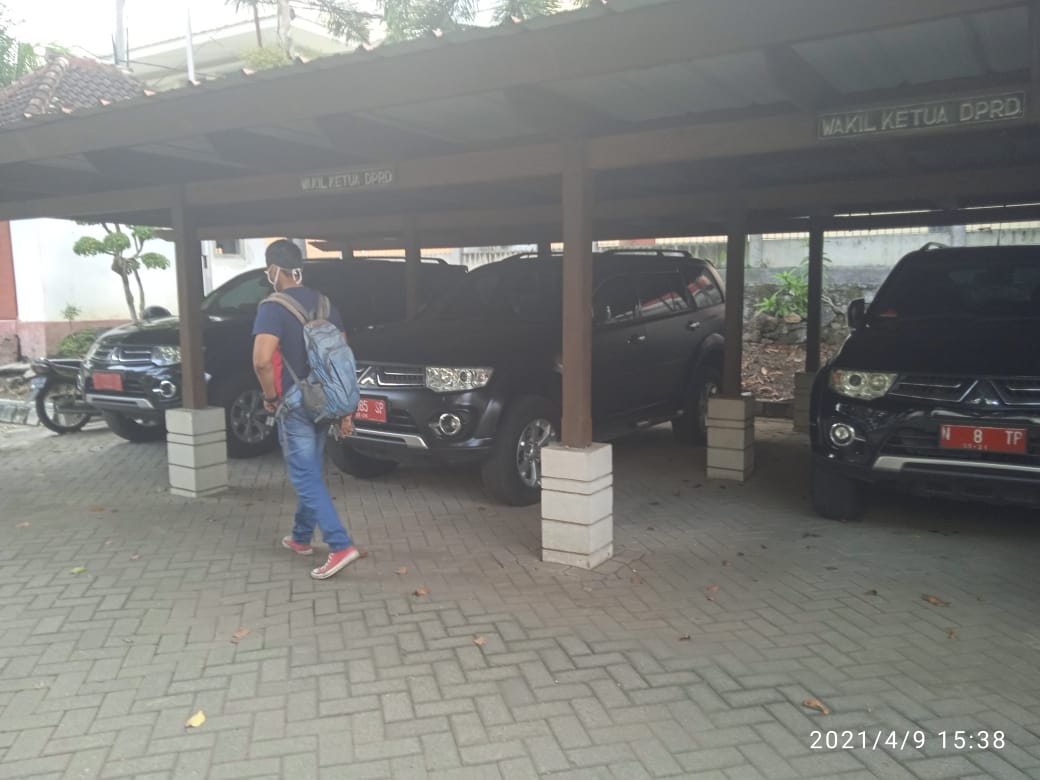 PASURUAN – Sejumlah mobil dinas pimpinan DPRD Kab Pasuruan, seminggu ini terparkir di garasi gedung Dewan Kab Pasuruan di jalan raya Raci, Bangil Pasuruan. Ada lima mobil dinas yang terparkir di area parkir tersebut, diantaranya dua mobil dinas milik Ketua DPRD sedang selebihnya tiga mobdin masing-masing milik tiga Wakil DPRD Kab Pasuruan.