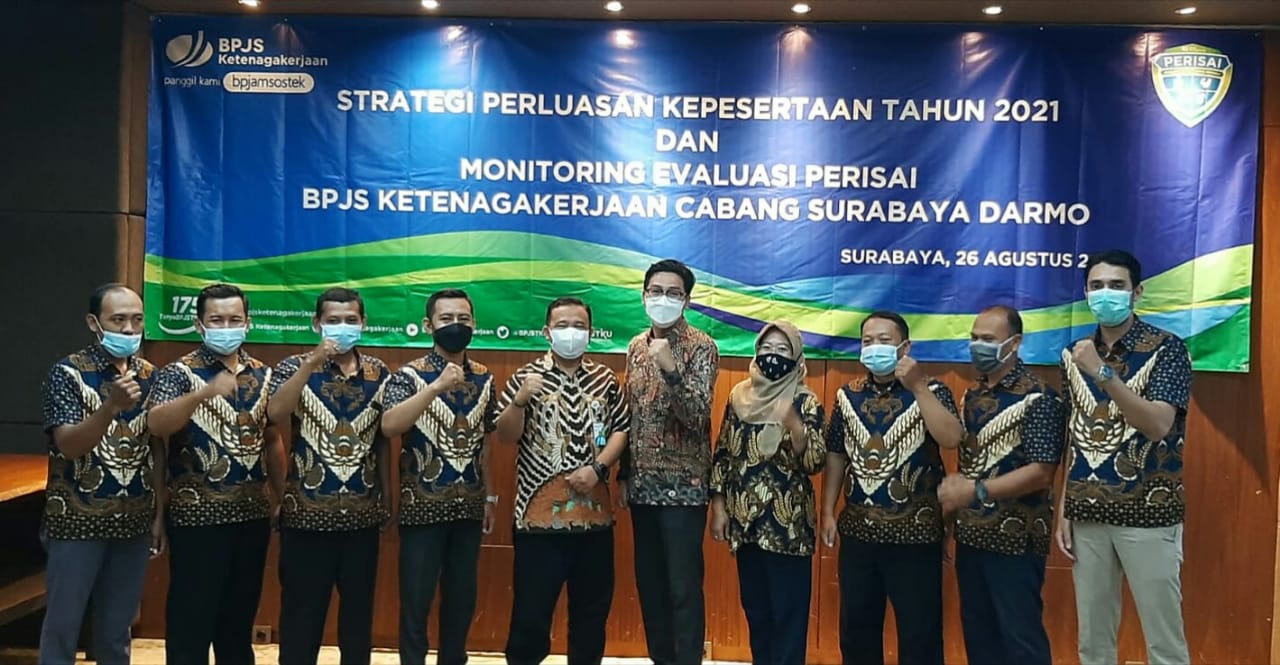 SURABAYA – Badan Penyelenggara Jaminan Sosial Ketenagakerjaan (BPJAMSOSTEK) Surabaya Darmo menggelar pertemuan bersama Penggerak Jaminan Sosial Indonesia (Perisai) BPJS Ketenagakerjaan Surabaya Darmo, Jumat (27/8/2021).