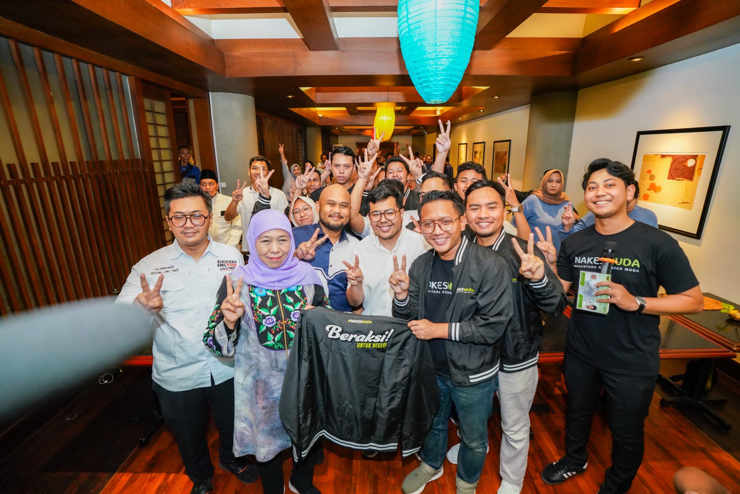 Para nakes yang terdiri dari dokter, perawat, apoteker, kesmas dan juga bidan berusia muda ini mendeklarasikan dukungan siap untuk memenangkan Khofifah-Emil di Pilgub Jatim 2024.