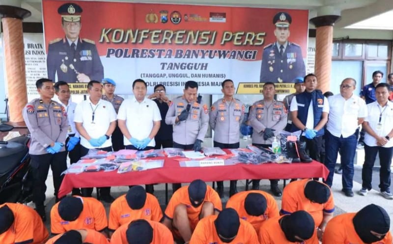 Puluhan tersangka tersebut, merupakan para pelaku tindak kejahatan dengan unsur kekerasan dan praktik premanisme yang terjadi di wilayah Banyuwangi.