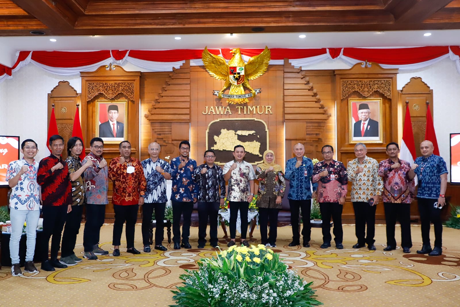 SURABAYA | BIDIK.NEWS – Gubernur Jatim Khofifah Indar Paranwasah menerima jajaran pengurus harian DPD PA GMNI Jatim di Gedung Negara Grahadi Surabaya Rabu Malam 7 Desember 2022. Dalam pertemuan ini ketua DPD PA GMNI Jatim Deni Wicaksono menyampaikan agenda silaturahmi berfokus pada pembicaraan menanam, merawat dan menjaga “tanduran” kebangsaan serta pluralisme di era society 5.0.