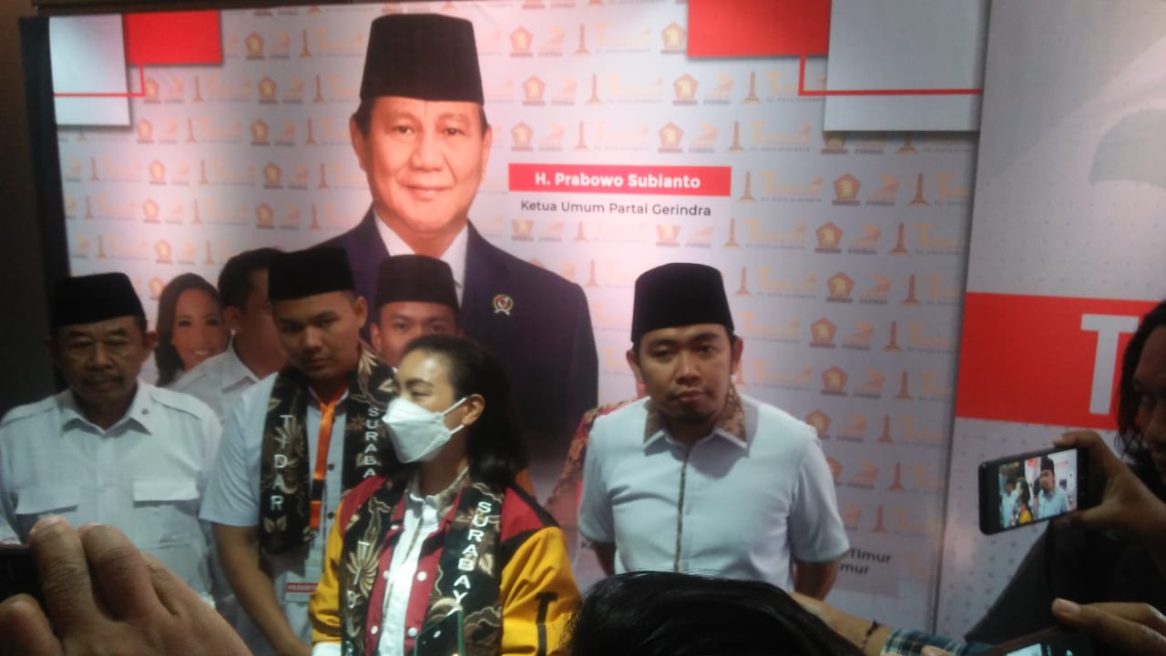 Ketua PC Tidar Surabaya dr Dwi Wijayanto disela agenda pembukaan pelantikan pengurus Rabu (31/8/2022), melakukan deklarasi bersama jajaran. Mereka kompak menyatakan akan mendukung penuh Ketua Umum Partai Gerindra tersebut untuk maju dalam kontestasi Pilpres mendatang.