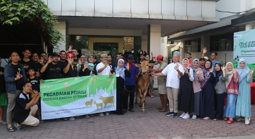 SURABAYA | bidik.news – PT Pegadaian Kanwil XII Surabaya di Hari Raya Idul Adha 1444 H menjadi momen yang ditekankan untuk saling berbagi. Ini sebagai bentuk tanggung jawab sosial karyawan maupun masyarakat sekitar kantor Pegadaian.