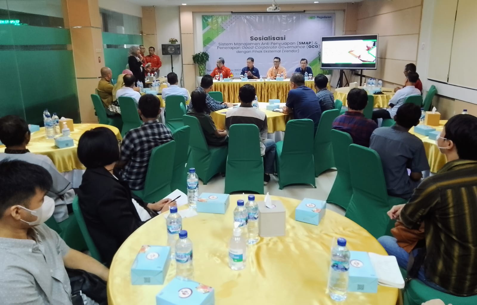 SURABAYA | bidik.news – PT Pegadaian Kanwil XII Surabaya mengundang puluhan rekanan, mitra kerja dan vendor guna mensosialisasikan Sistem Manajemen Anti Penyuapan (SMAP) ISO 370001:2016 dan Good Corporate Governance (GCG), Kamis (15/6/2023).