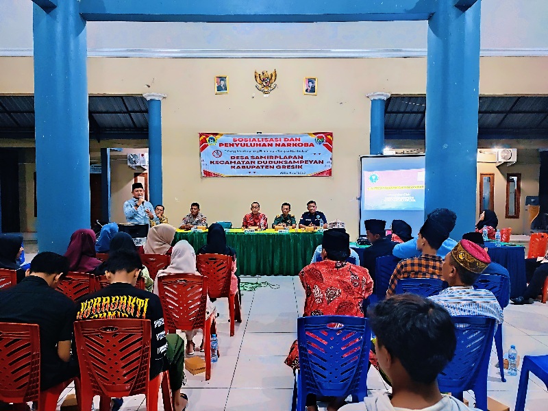 GRESIK I bidik.news – Dalam rangka meningkatkan kesadaran masyarakat terhadap bahaya narkoba, Pemerintah Desa Samirplapan, Kecamatan Duduksampeyan, Kabupaten Gresik, menggelar kegiatan Sosialisasi dan Penyuluhan Narkoba bertema “Yang Muda Yang Berkarya Tanpa Narkoba”, pada Rabu malam (9/7/2025) pukul 19.30 hingga 22.00 WIB di Balai Desa Samirplapan.