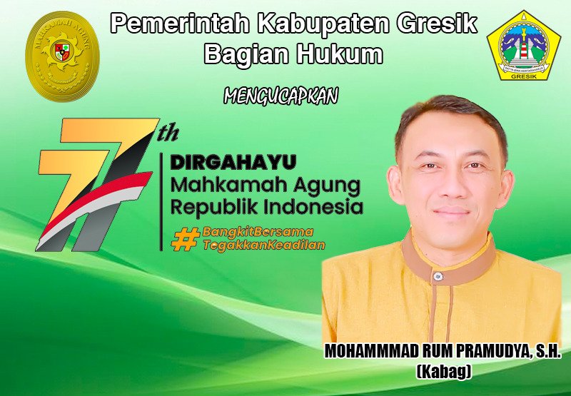 Pemerintah Kabupaten Gresik Bagian Hukum Mengucapkan, Selamat Dirgahayu Mahkamah Agung RI ke-77