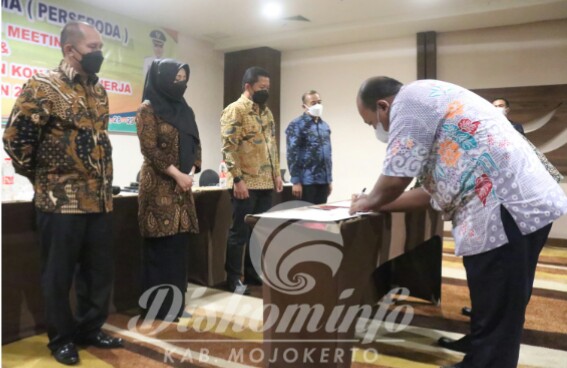 MOJOKERTO – Bupati Mojokerto Ikhfina Fahmawati didampingi Sekretaris Daerah Teguh Gunarko menghadiri Kick Off Meeting dan penandatanganan Kontrak Kinerja Tahun 2022 dengan PT BPR Majatama di Hotel Best Westerr Papillio Surabaya, Jum’at (28/01/2022) lalu, yang dikutip Bidik dari Laman Diskominfo Pemkab Mojokerto.