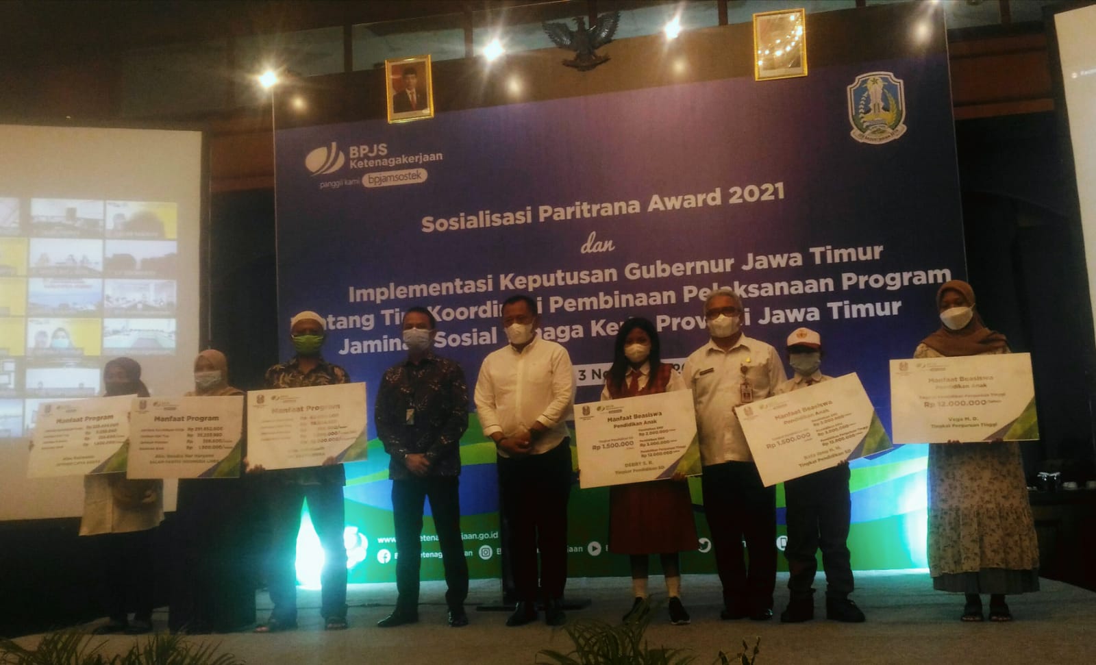 Plh. Sekdaprov Jatim Heru Tjahjono membuka kegiatan Sosialisasi Paritrana Award 2021 dan Implementasi Keputusan Gubernur tentang Tim Koordinasi Pembinaan Pelaksanaan Program Jaminan Sosial Tenaga Kerja di Jawa Timur. Heru memberikan apresiasi kepada penerima Penghargaan Jaminan Sosial Ketenagakerjaan (Paritrana) Award 2020 lalu, Yaitu RSNU Tuban terbaik ke-3 kategori perusahaan menengah dan Pesona Osing Banyuwangi kategori Usaha Kecil Mikro (UKM). Paritrana Award tahun ke-5 ini akan menilai kapitalisasi potensi atas terbitnya Instruksi Presiden (Inpres) No. 2/2021 tentang Optimalisasi Pelaksanaan Program Jaminan Sosial Ketenagakerjaan, dan Peraturan Menteri Dalam Negeri No. 27/2021.
