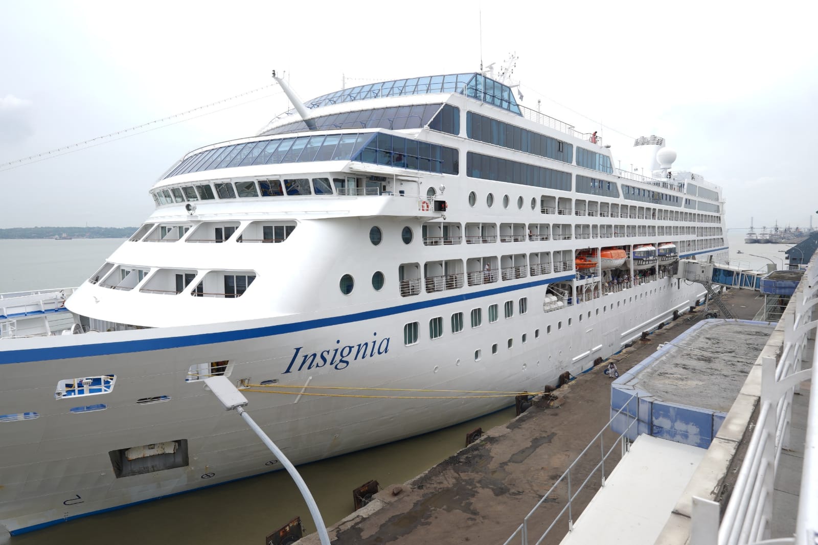 SURABAYA | bidik.news – Pelindo Sub Regional Jawa mendapat kunjungan kapal pesiar MV. Insignia yang memiliki bobot 30.277 GT dengan panjang 180 meter, Senin (11/3/2024) pagi. Kapal ini perdana sandar di Pelabuhan Tanjung Perak Surabaya sejak 3 tahun terakhir pasca pemerintah memperbolehkan kunjungan kapal pesiar setelah Covid-19 berakhir.