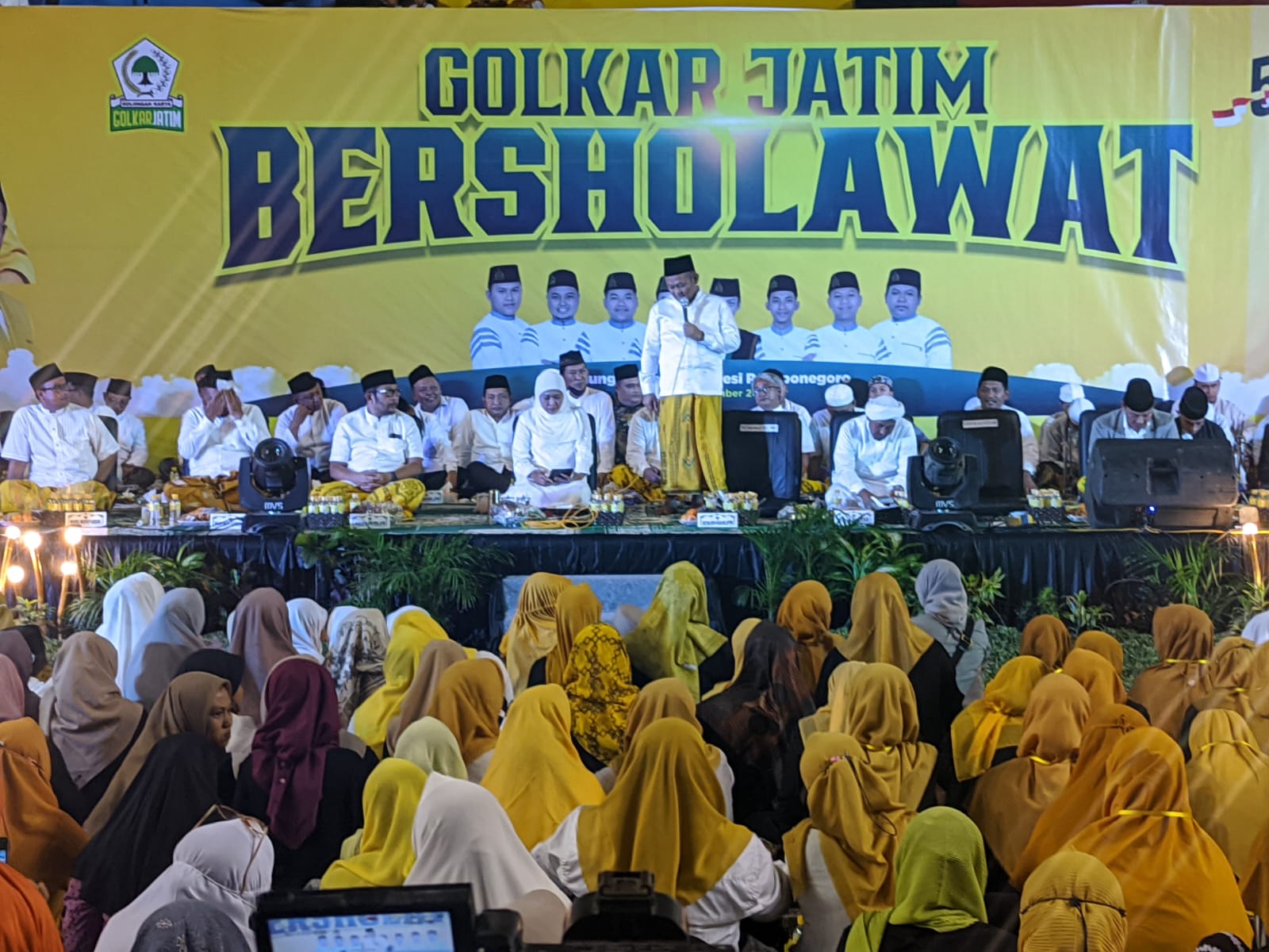 GRESIK |BIDIK.NEWS – Lantunan salawat menggema dalam kegiatan Golkar Jatim Bersholawat di Wahana Ekspresi Poesponegoro (WEP), Gresik, Kamis (16/11/2022) malam.