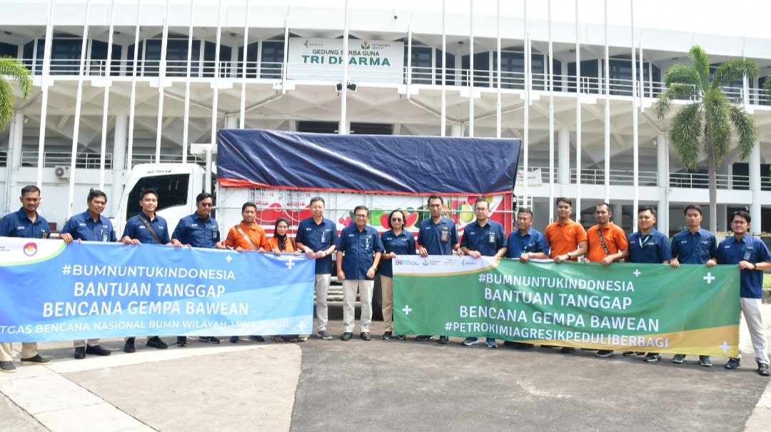 Bersama BUMN Wilayah Jawa Timur, Petrokimia Gresik mengirimkan bantuan berupa kebutuhan dasar bagi korban gempa bumi di Pulau Bawean, Kab. Gresik, Jawa Timur.