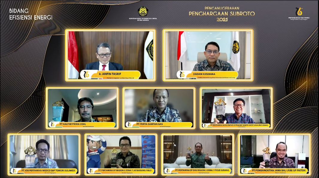 Penghargaan Subroto yang digelar secara virtual dihadiri Menteri Energi dan Sumber Daya Mineral, Ir. Arifin Tasrif, Rabu (29/9/2021). (Ist)