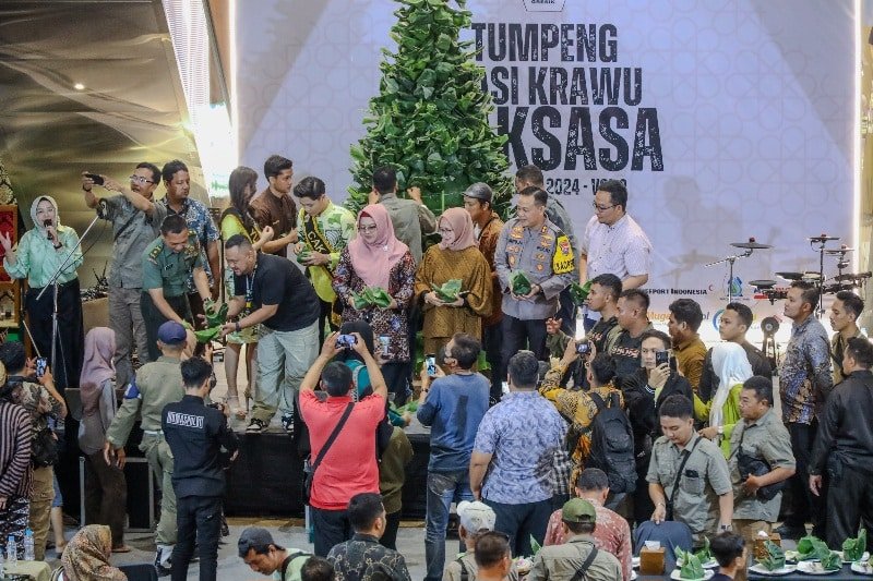 GRESIK I bidik.news – Puncak kegiatan Tumpeng Nasi Krawu Raksasa diserbu oleh masyarakat yang belanja di Gressmall. Dengan sistem keamanan yang ketat masyarakat yang antri pembagian nasi krawu gratis berjalan dengan baik tanpa ada kendala.